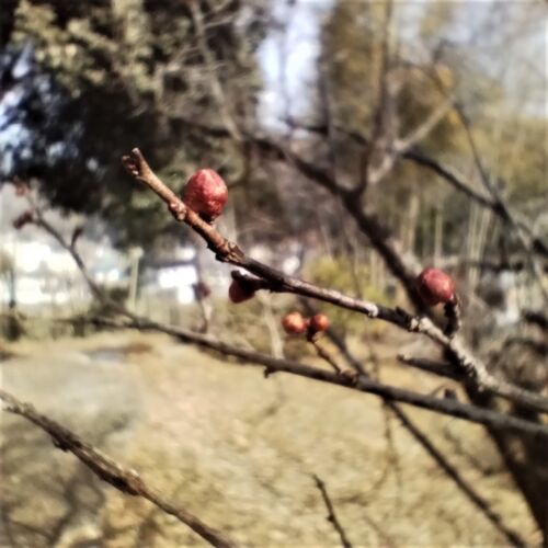 1月8日(日曜日)です 昨日は 午前中に雨が降り その後も曇って 寒い一日でした(雨は 畑に嬉しいですけどね(^^)v 今日は 一転 良いお天気で 暖かくなりました 下のは 山のほうの「紅梅のつぼみ」です まだまだ 固いつぼみですが 春の準備は 進んでいるようで…