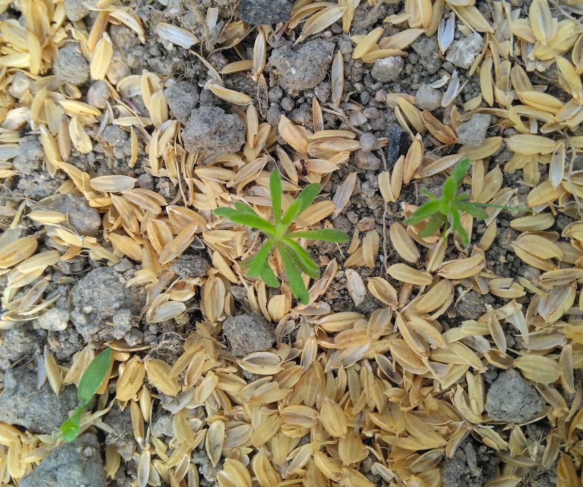 ここは 去年に育てた ひまわりを置いて(捨てて)居たところです